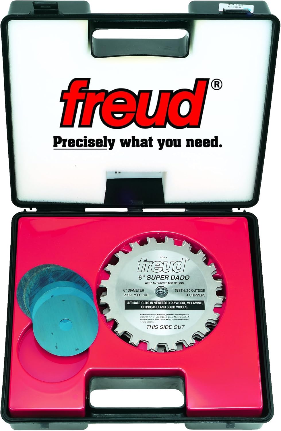 Razor-Sharp Blades for Smooth, Splinter-Free DadoesThe perfect dado set for the fine cabinetmaker or weekend woodworker, the Freud SD508 produces dadoes and grooves that meet with flush, even edges. So you can be assured of precise cuts every time, the set is equipped with precision-grade features, starting with two proprietary razor-sharp outside blades.