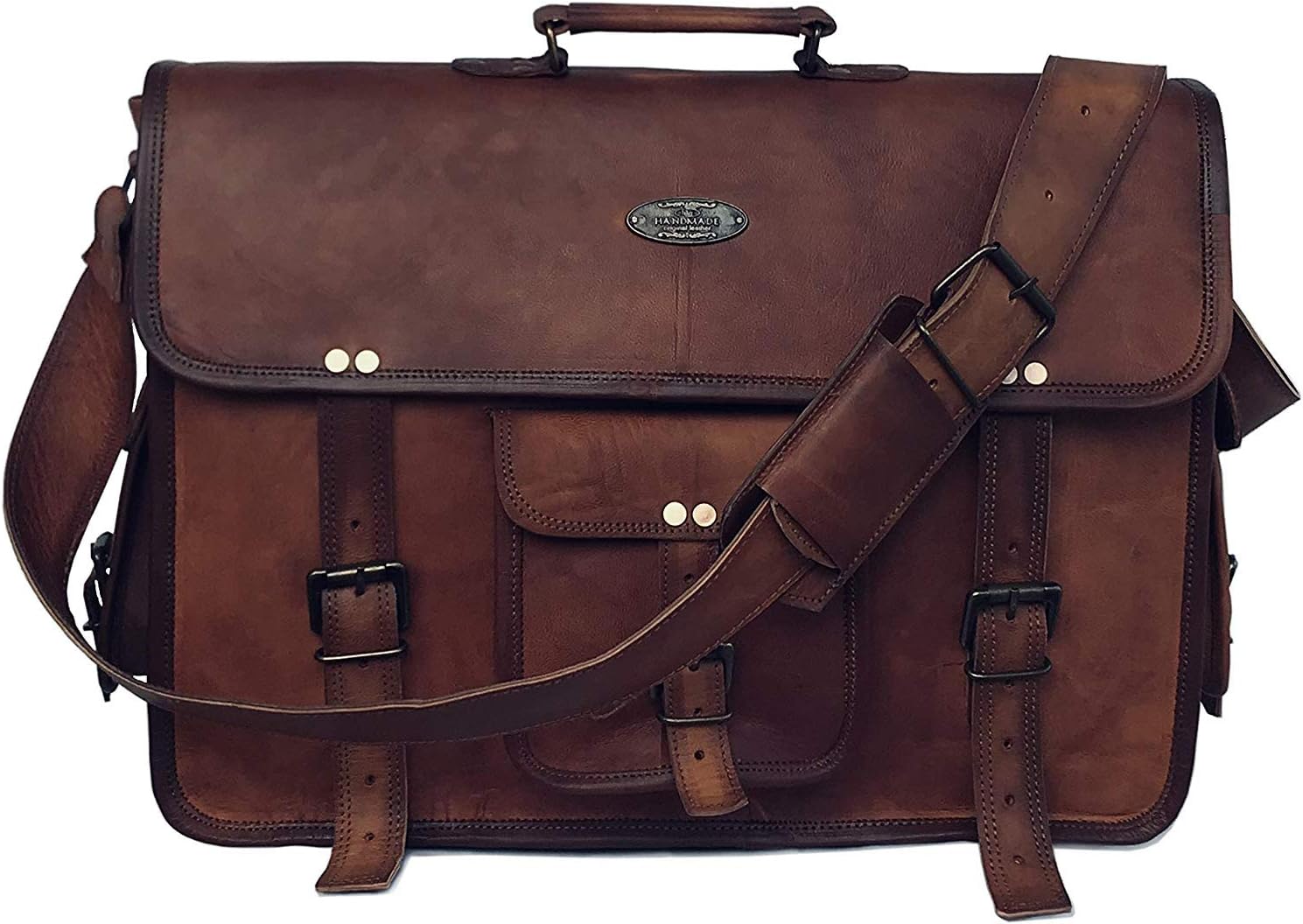 A perfect companion for your college office and other use - Made with Hands Genuine leather messenger bag Going office or collage need something to carry all your essentials like laptop , files , folder and belonging and to keep them at one place our leather laptop bag is perfect for all your needs. Size : 18" Wide 13" High 5" Deep Color : Brown Material : Genuine Leather (Goat Hide) Protection : Laptop padding to keep laptop safe. Unisex leather laptop bag messenger bag satchel in dark brown. This original handmade leather messenger bag or leather laptop bag is created by finest Indian artisans with all the attention to detailing.the messenger bag is made of genuine leather. you will receive exactly same bag as shown no foul smell as it comes in other goat leather bag. Note: The bags have a light leather smell which is due to packaging once received please keep it open for few hours and it will be ready to use